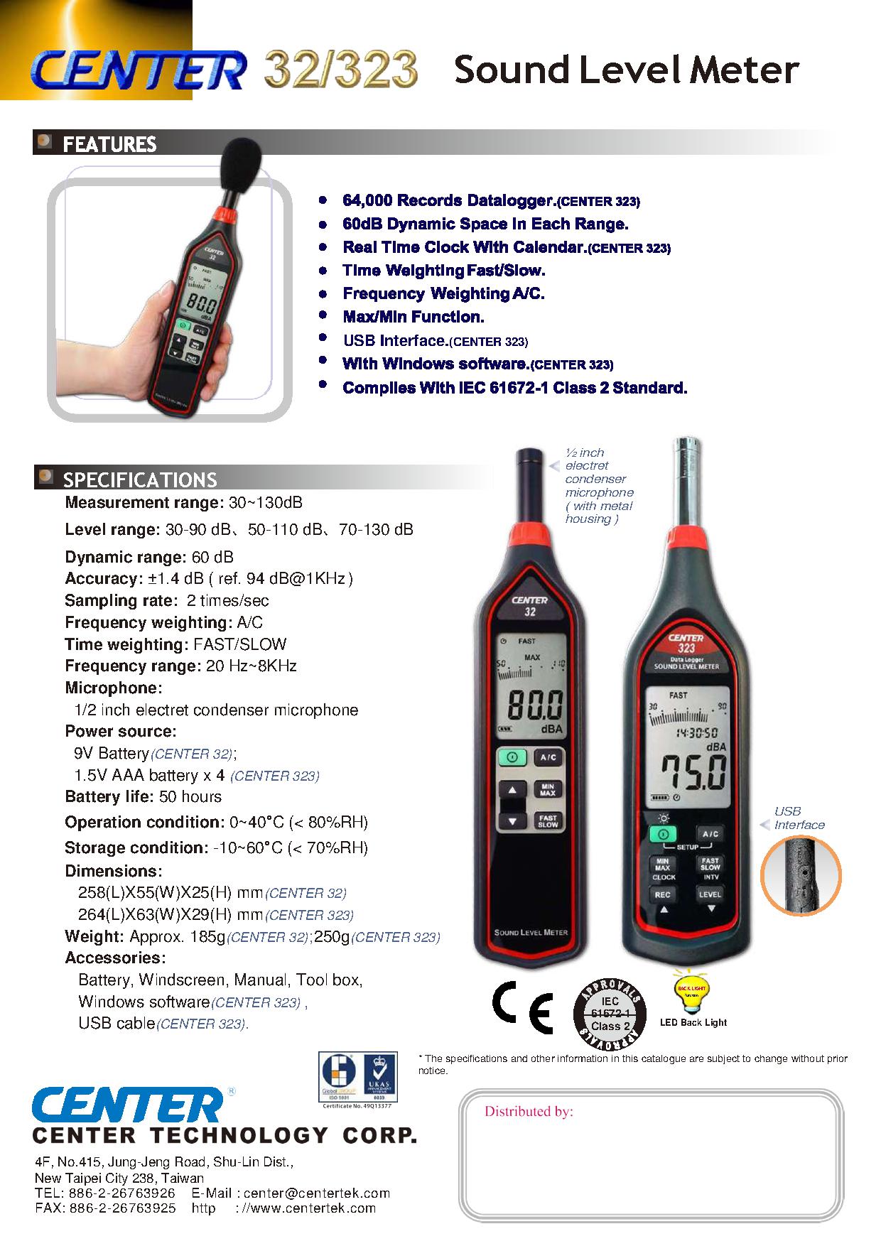 – วัด dB (A&C Frequency Weighting), Time Weighting (Fast, Slow), คงค่าข้อมูลที่วัดได้บนจอแสดงผล, เรียกดูค่าสูงสุด/ต่ำสุด, คงค่าสูงสุดม Output AC, Output RS232