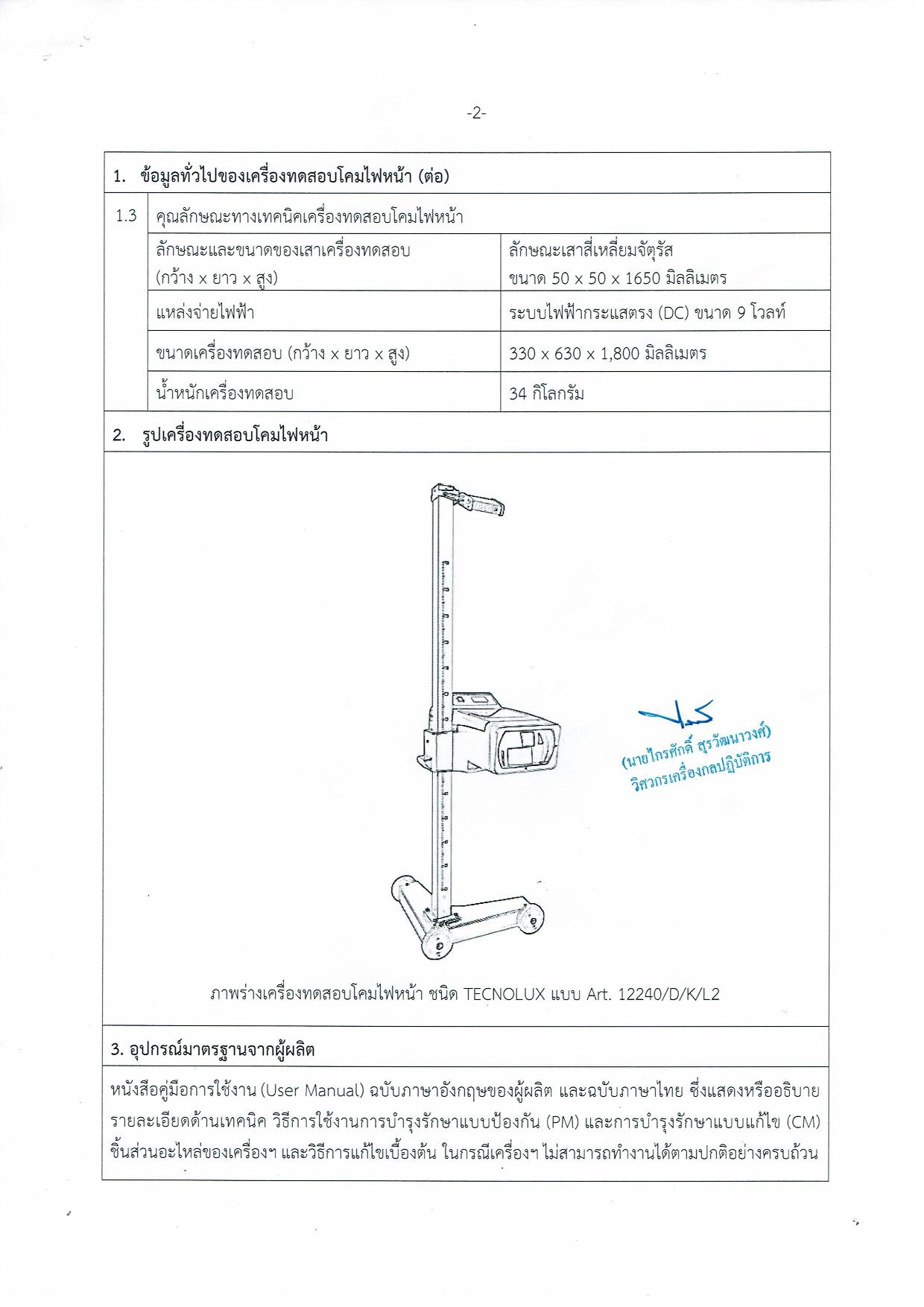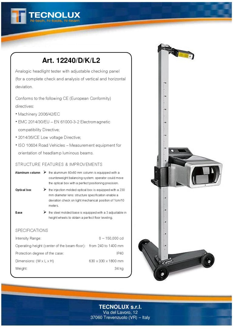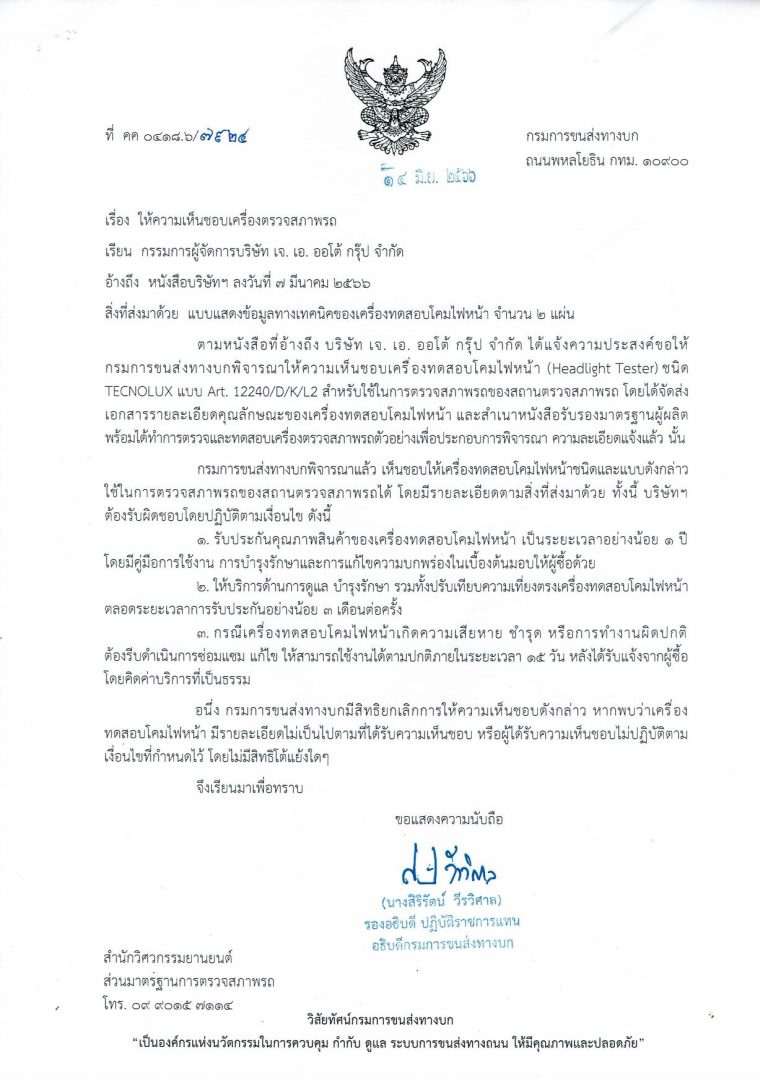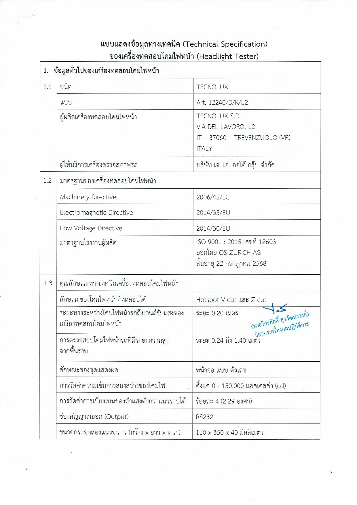 กรมการขนส่งพิจารณาให้ความเห็นชอบเครื่องทดสอบโคมไฟหน้า (Headlight Tester) ชนิดTECNOLUX แบบ Art.12240/D/K/L2 สำหรับใช้ในการตรวจสภาพรถของสถานตรวจสภาพรถ