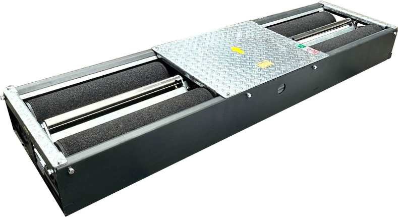 - ระบบลูกกลิ้งต้านทานการลื่น: ลูกกลิ้งขนาด 205 มม. ยาว 700 มม. เคลือบด้วยเม็ดแร่ Corundum ให้การยึดเกาะสูงมาก ป้องกันการลื่นไถลได้ดีเยี่ยมทั้งในสภาพล้อเปียกและแห้ง (ค่าสัมประสิทธิ์แรงเสียดทาน >0.70/>0.60)
