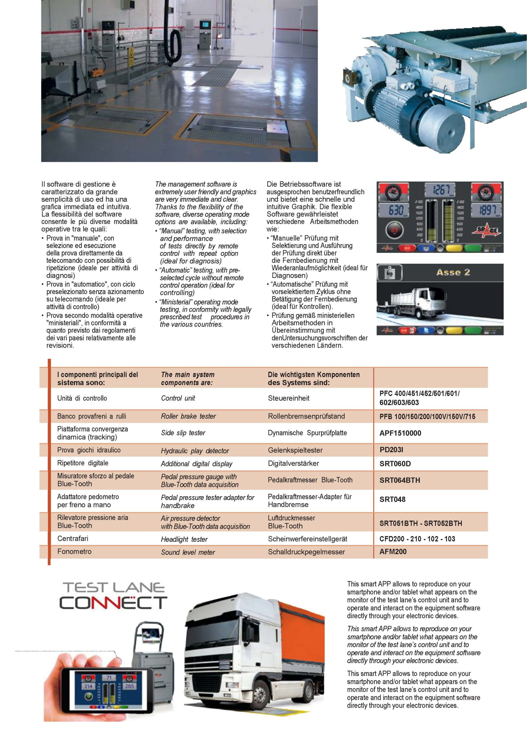 🔗 พร้อมขยายเป็นสถานีตรวจสภาพแบบครบวงจร ชุดควบคุม (Control Unit) ทำหน้าที่เป็นศูนย์กลางของระบบ สามารถเชื่อมต่อเข้ากับอุปกรณ์ทดสอบอื่นๆ เพื่อทำงานร่วมกันได้อย่างสมบูรณ์แบบ อาทิ เครื่องทดสอบศูนย์ล้อ (Side slip tester), เครื่องทดสอบความหลวมช่วงล่าง (Play detector), เครื่องวัดศูนย์ไฟหน้า, เครื่องวัดระดับเสียง รวมถึงอุปกรณ์เสริมไร้สายระบบบลูทูธ (เช่น เซนเซอร์วัดแรงเหยียบเบรกและวัดความดันลม)