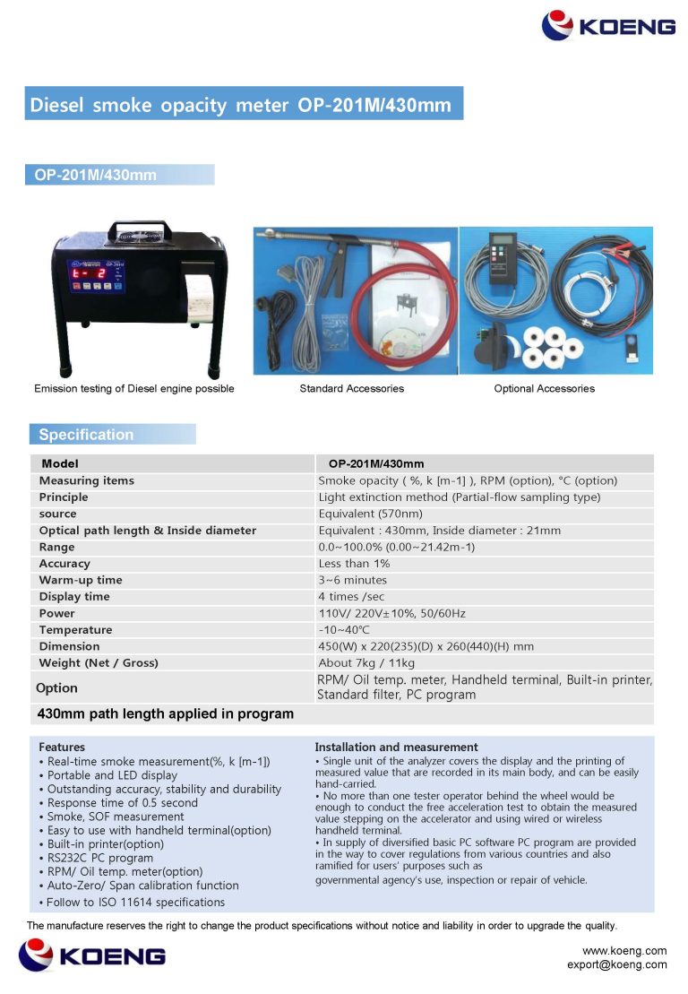 เครื่องวัดควันดำระบบทึบแสงสำหรับเครื่องยนต์ดีเซล KOENG รุ่น OP-201M/430mm (Diesel Smoke Opacity Meter)