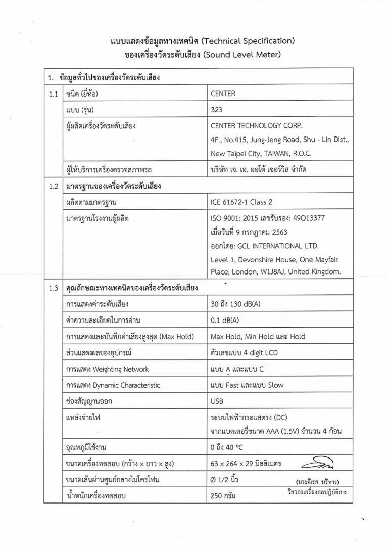 ความถูกต้อง : ±1.4dB (ภายใต้เงื่อนไขการอ้างอิง @ 94dB, 1KHz)
